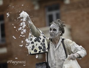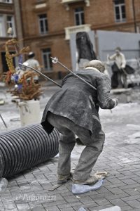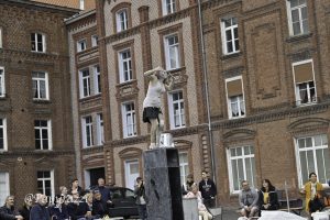 À travers le geste, le mot et le son, la compagnie retranscrit des sujets de la vie quotidienne et de l’actualité mondiale: racisme, folie, exode… La scénographie et l’écriture s’articulent autour d’un paramètre théâtral majeur : l’espace public.